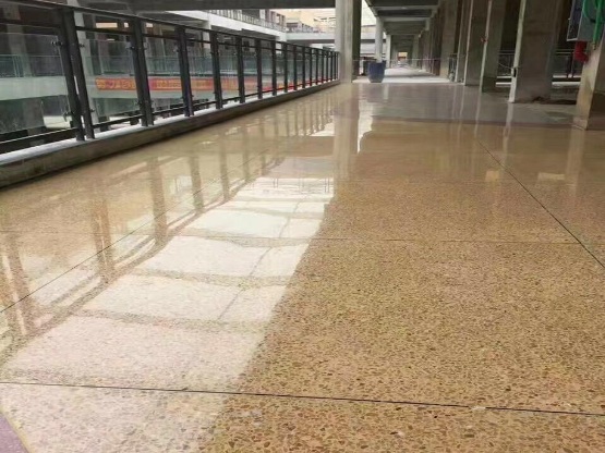 耐用性是无机磨石地坪的突出亮点。经检测,其表面莫氏硬度可达 6-7 级,远超普通瓷砖(莫氏硬度 4-5 级),日常行走、家具摩擦不易产生划痕;抗压强度达 50MPa 以上,能承受重物长期碾压,适配商场、酒店、办公楼等高频人流区域,甚至可用于车库地面,抵御车辆碾压与摩擦。此外,地坪表面经密封固化处理后,形成致密的保护层,防水、防渗透性能优异,咖啡、油污等污渍洒落后,只需用湿布擦拭即可清洁,避免污渍渗入基层导致难以清理的问题,大幅降低后期维护成本。